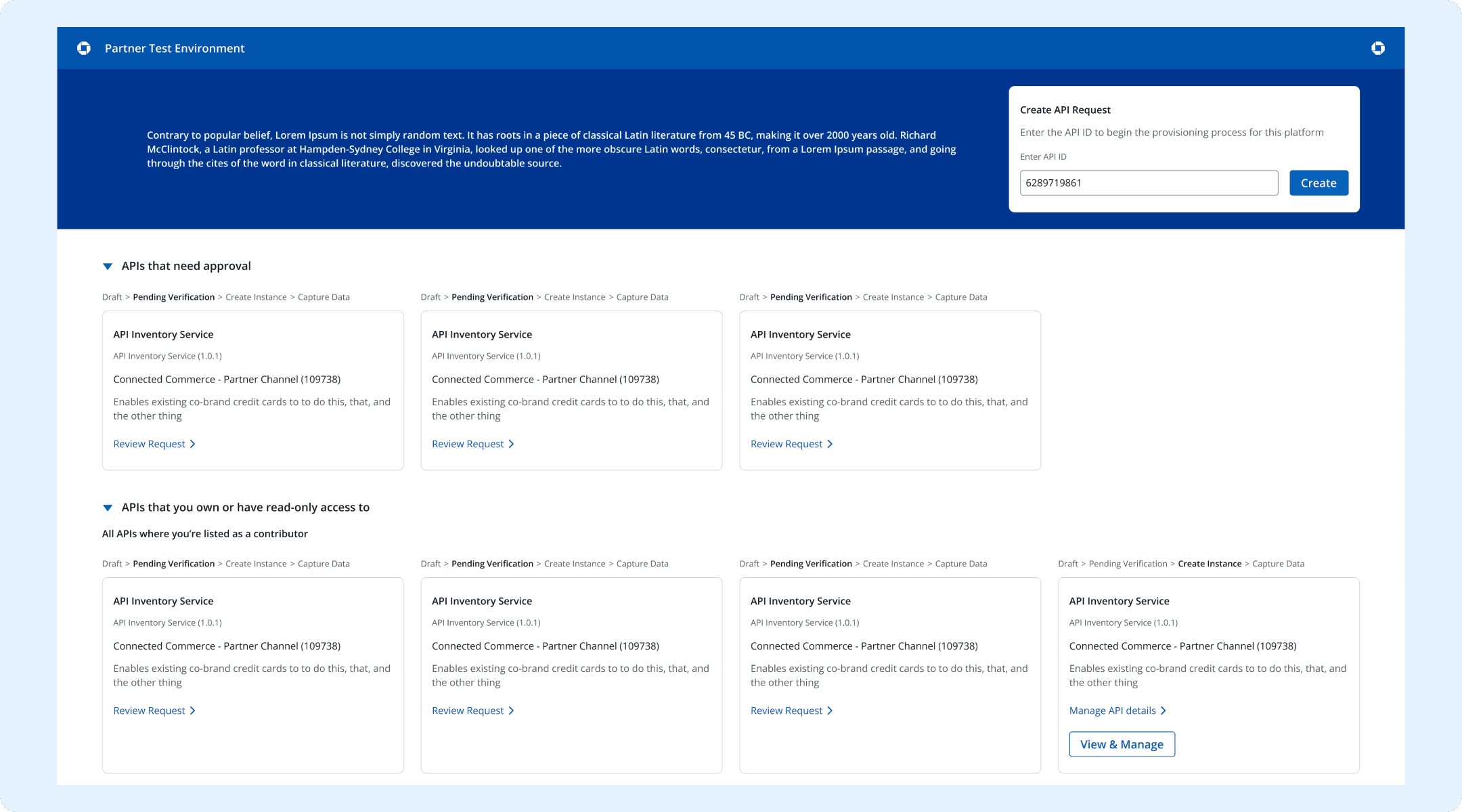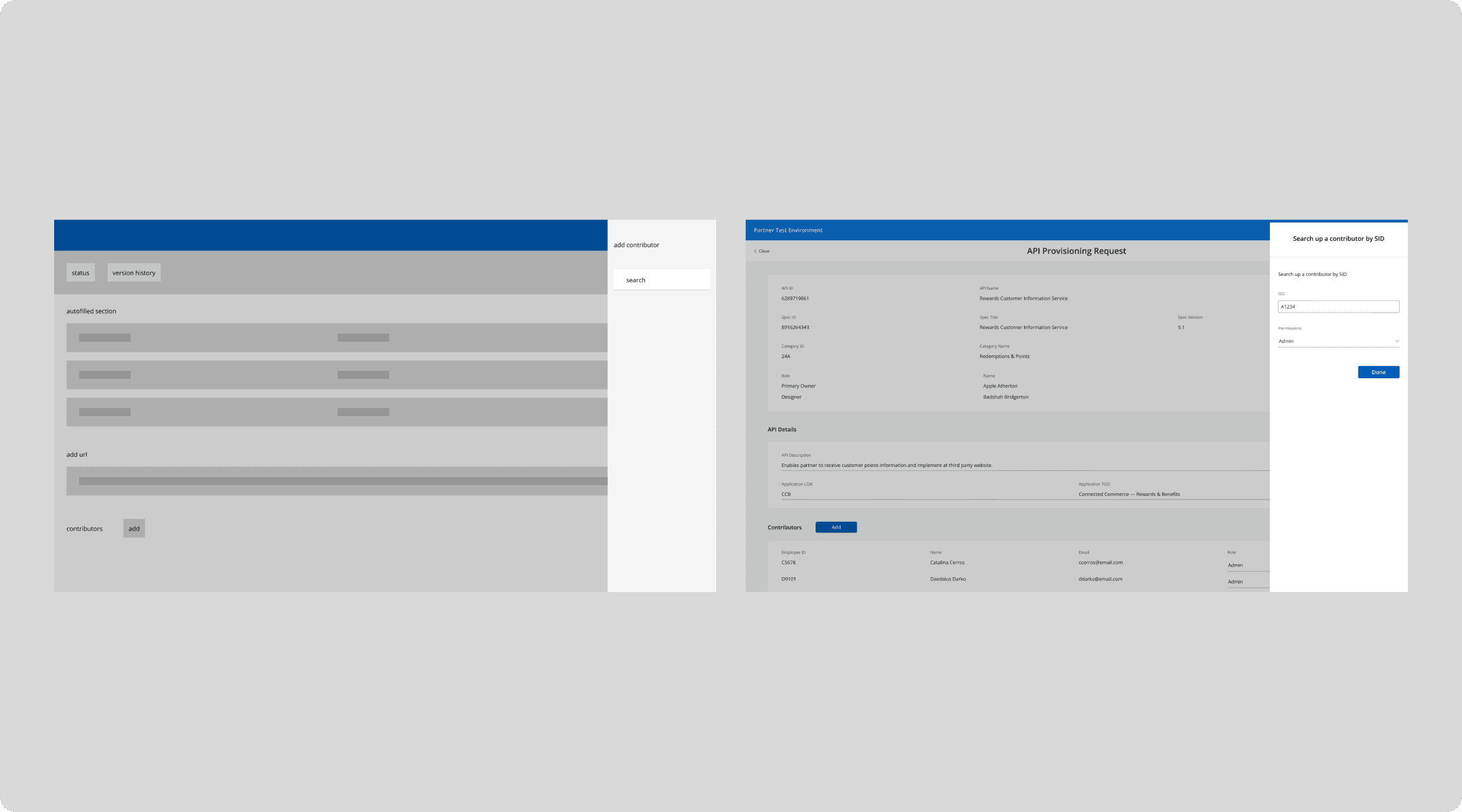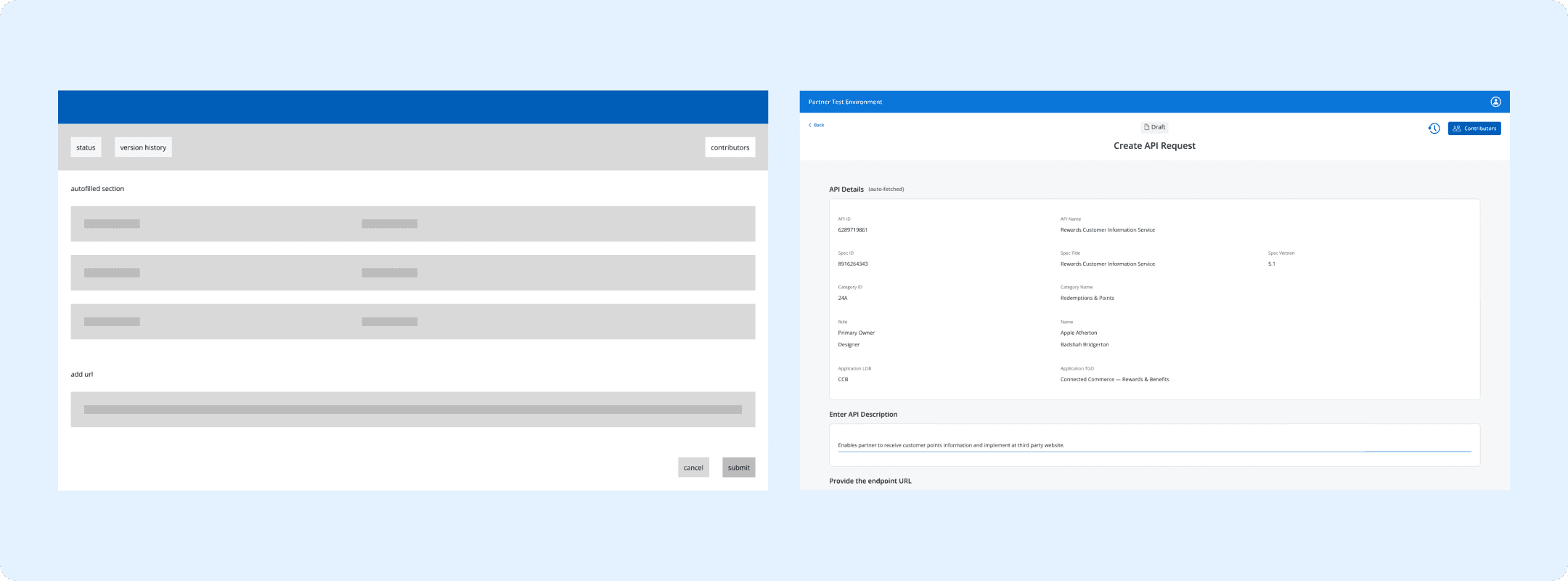 Our goal was to redesign a pre-existing flow allowing engineers to quickly submit API requests and capture data from approved APIs without building from scratch.