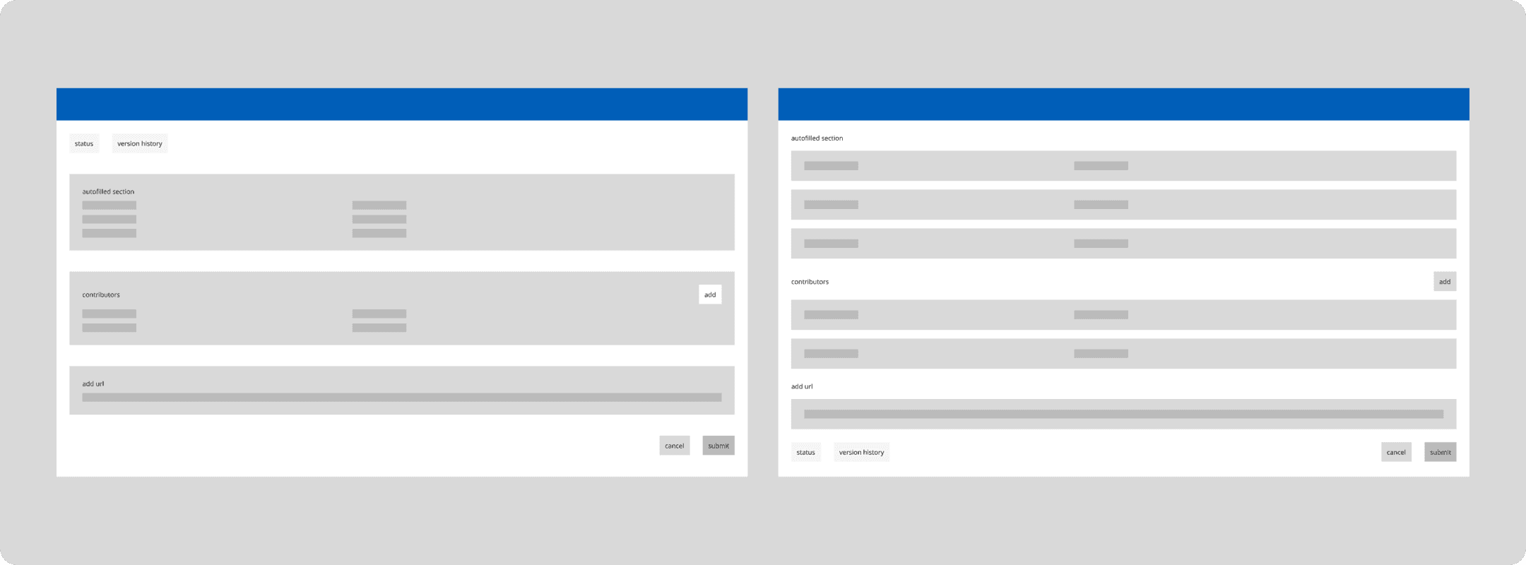 By highlighting status in the header, and including contributors as separate, the difference between filling out the form and sharing it became clearer.