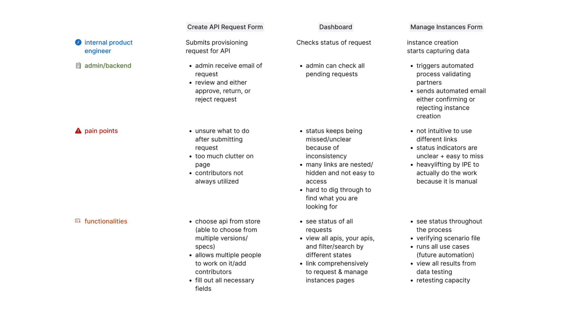 To make this space less opaque, I worked with PMs and engineers (our end users and the ones that would build this system!) to understand what the necessary functionalities of each page were.