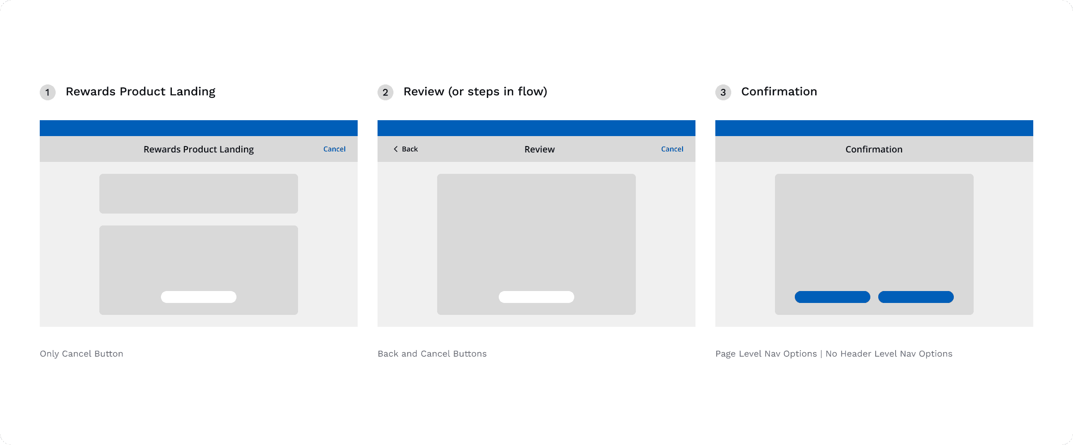 This meant following conventions on the presence of certain navigation elements (‘back’ and ‘cancel’) while understanding the complexity unique to Rewards.