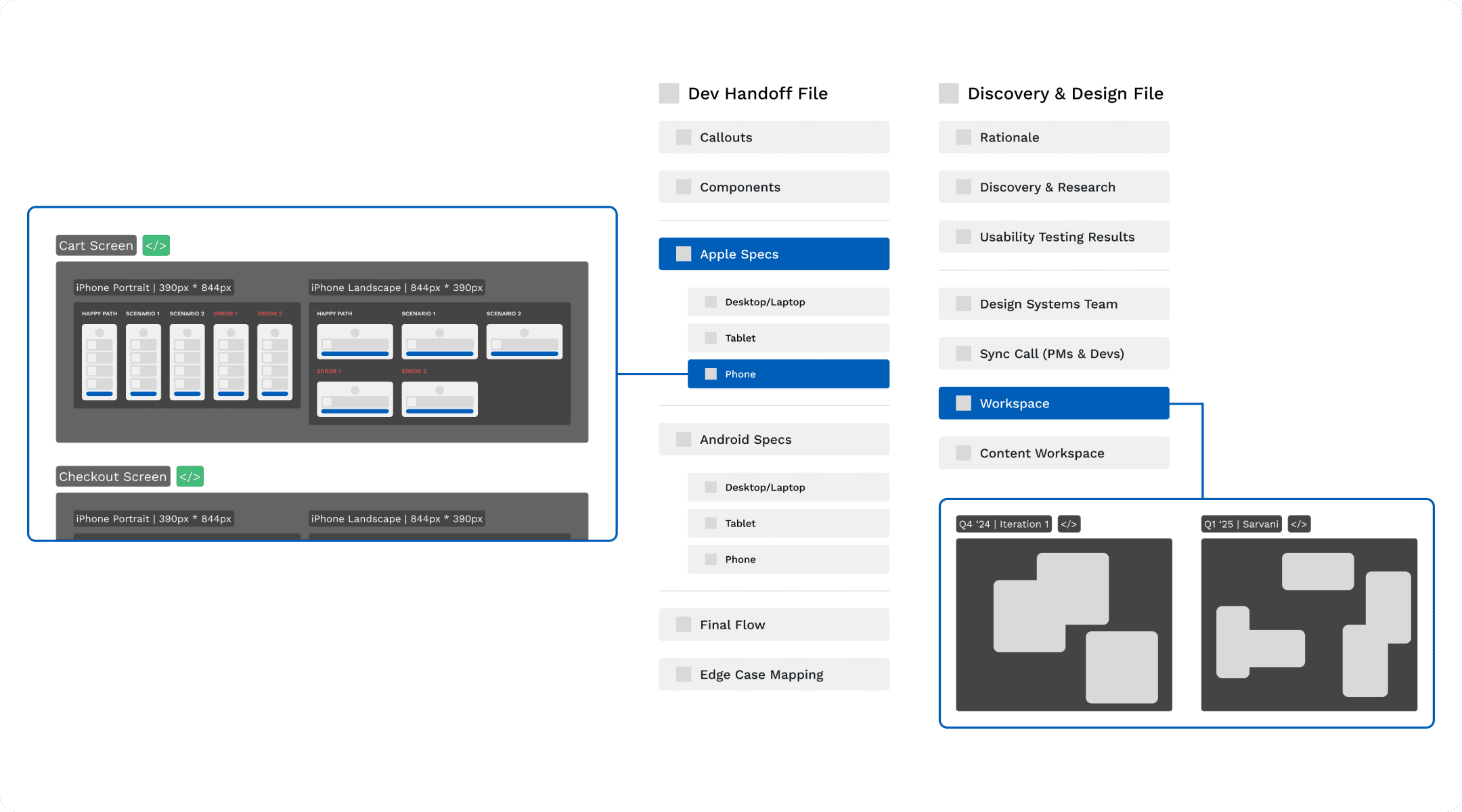 My eventual system and approach helped clarify 40+ use cases (within the complex space of a new gift card native mobile flow) and quickly align the team!